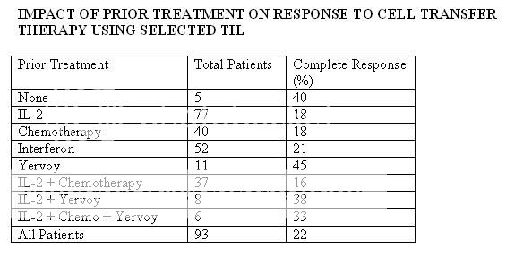 IMPACT OF PRIOR TREATMENT ON RESPONSE TO CELL TRANSFER THERAPY USING SELECTED TIL